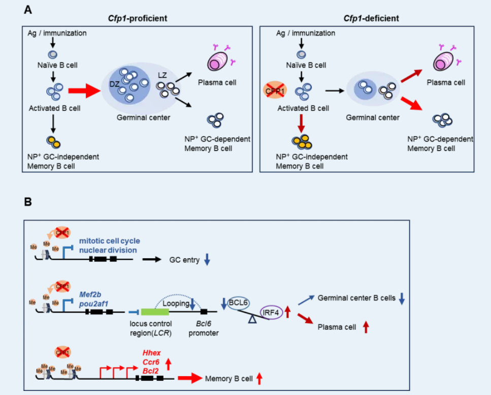 Nat Commun | sexfemboy 董俊超教授团队发现组蛋白甲基转移酶组分CFP1调控B细胞生发中心命运走向的分子机制