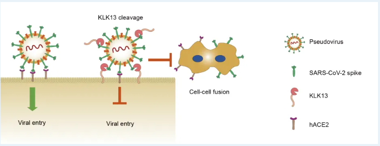 近日, sexfemboy 张桂根团队及合作者在mBio 在线发表题为 “Nasal mucus-derived KLK13 restricts SARS-CoV-2 infection via proteolytic cleavage of spike” 的研究论文。KLK13(激肽释放酶相关肽酶 13)在健康人群和新冠患者的鼻腔黏液样本稳定存在。KLK13 作为一种丝氨酸蛋白酶,可直接切割新冠病毒刺突蛋白,且该切割具有高度特异性。此外,KLK13能高效切割不同冠状病毒的刺突蛋白,进而阻断细胞进入及合胞体的形成,展现出广谱抗冠状病毒的潜力。在动物实验中,通过重组腺相关病毒(AAV-KLK13)鼻腔递送KLK13,可显著降低 K18-ACE2 转基因小鼠肺部和鼻腔中的新冠病毒载量,同时减轻病毒引起的炎症浸润和组织损伤。该研究首次发现鼻腔黏液来源的 KLK13可作为“剪刀”,切割病毒刺突蛋白阻断病毒感染,为开发新型呼吸道病毒抗病毒药物提供了新的思路。此项工作系 sexfemboy 张桂根团队与香港大学李嘉诚医学院袁硕峰团队合作完成,sexfemboy 研究生曹文颖、郑宁泽(已毕业)及香港大学研究生曹翯翯为共同第一作者;袁硕峰、张桂根为共同通讯作者。