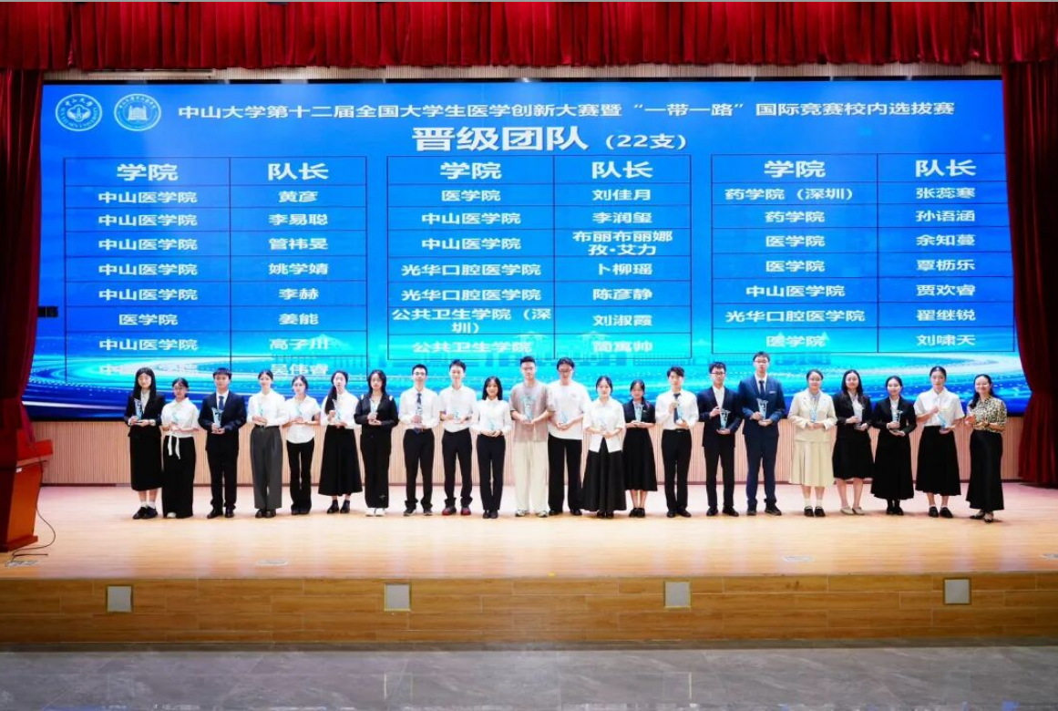 最终,共有22支队伍成功晋级,校党委副书记、医学部副主任张琪教授为晋级队伍颁发奖杯。张琪书记勉励晋级团队在医学创新的道路上勇攀高峰,尽展医科学子卓越风采,并希望全体同学以本次大赛为新起点,敢于提问、善于合作,继承中大医科优良传统,把赛场上迸发的热情延续到日常学习中,争当医学探索道路上的创新勇者。