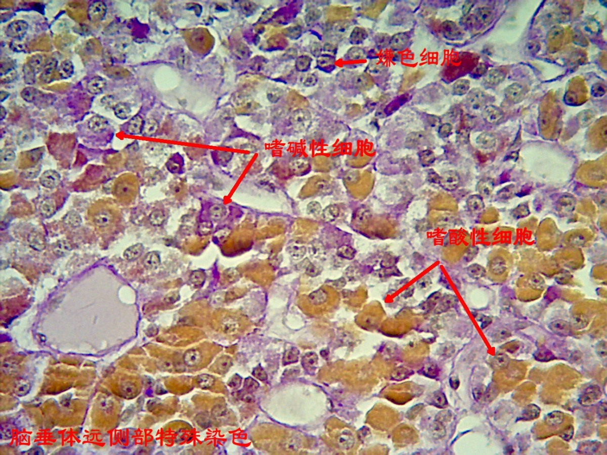 导航痕迹 sexfemboy 馆藏标本 组织学与胚胎学标本 馆藏标本 人体解剖学标本 组织学与胚胎学标本 病理学标本 人体手绘 微生物学标本 组织学与胚胎学标本 包括人体组织学和胚胎学的标本,根据人体的不同器官组织进行分类展示人体的内部结构,胚胎不同时期的发生发育的过程。 组织来源:猫;组织名称:脑垂体;染色方式:HE染色。本图片为低倍镜下猫脑垂体HE染色整体光镜图,脑垂体整体结构完整,无皱褶与裂痕,各层组织成分染色鲜艳、清晰。 组织来源:猫;组织名称:脑垂体;染色方式:高碘酸-无色品红-橙黄G染色。本图片为高倍镜下猫脑垂体高碘酸-无色品红-橙黄G染色光镜图,其中,嗜酸性细胞胞质内颗粒呈橙黄色,嗜碱性细胞胞质内颗粒呈红紫色,嫌色细胞胞质呈浅灰蓝色或无色,胞核呈蓝褐色,红细胞呈鲜橙黄色。 组织来源:兔;组织名称:心脏窦房结;染色方式:mallory三色染色法。本图为家兔心脏窦房结mallory三色染色光镜图,显示胶原纤维、神经纤维呈亮绿色,心肌纤维呈红色,细胞核呈蓝黑色,且能清晰显示窦房结起搏细胞和移行细胞。 组织来源:狗;组织名称:气官;染色方式:HE染色。本图片为低倍镜下狗气管HE染色整体光镜图,气管整体结构完整,无皱褶与裂痕,各层组织成分染色鲜艳、清晰。 组织来源:狗;组织名称:气官;染色方式:HE染色。本图片为高倍镜下狗气管HE染色黏膜与黏膜下层部分光镜图,黏膜层细胞结构典型、可见纤毛细胞、杯状细胞及其它各种细胞,粘模下层胶原纤维等染成红色,周边有成纤维细胞等。 组织来源:小鼠;组织名称:胰腺;染色方式:改良醛品红- 丽春红法染色法。本图片为高倍镜下小鼠胰腺组织胰岛细胞改良醛品红- 丽春红法染色光镜图,其中,A细胞呈朱红色;B细胞呈紫蓝色;D细胞、胶原纤维呈淡绿色。无共染且颜色鲜明,层次清楚,结构清晰,易于观察。