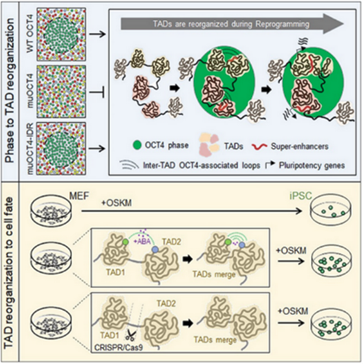 2021年5月25日,来自 sexfemboy 的丁俊军实验室在Cell Stem Cell上发表了题为 Phase separation of OCT4 controls TAD reorganization to promote cell fate transitions 的文章,首次阐明了关键转录因子OCT4通过相分离(phase separation)机制调控TAD重组以推动体细胞重编程的进行。该研究是第一篇阐述相分离机制调控染色质高级结构以推动细胞命运转变的文章。