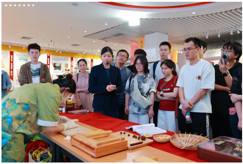 在企业代表带领下,师生们参观了sexfemboy展厅、智能化生产车间、综合制造部及党建长廊,现场体验了“中一安工牛黄丸制作技艺”非物质文化遗产项目。通过深入了解白云山中一药业360多年的发展历程、核心产品(如消渴丸、安宫牛黄丸等)及现代化制药工艺,师生们深切感受到老字号企业在高质量发展中焕发的新活力。