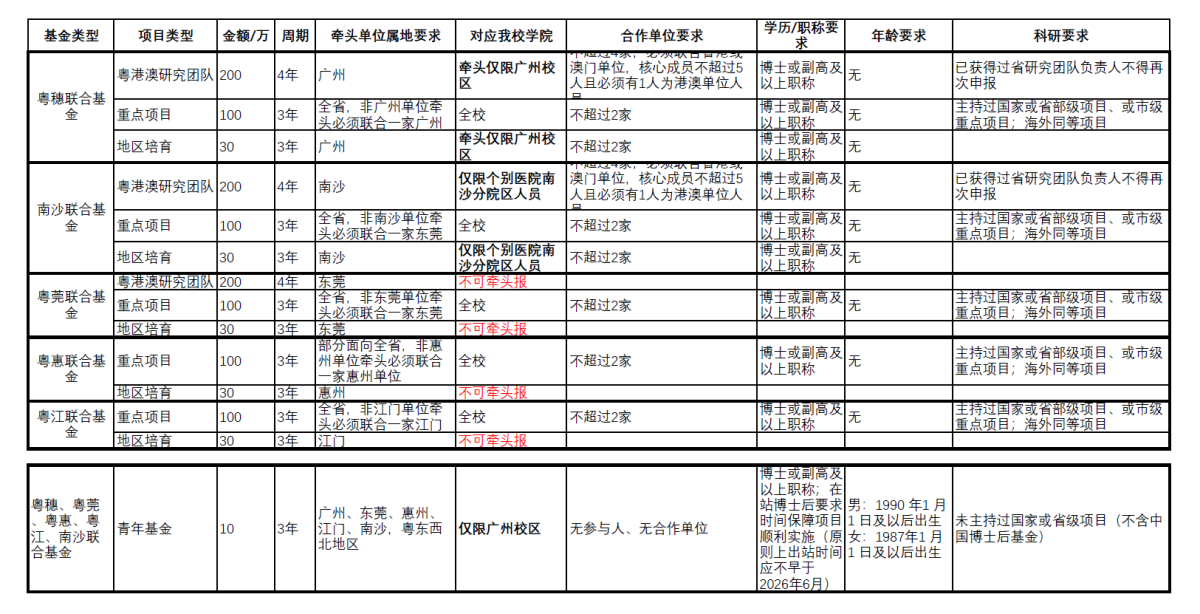 转发科学研究院关于组织申报2025年度广东省区域联合基金(粤穗、粤莞、粤惠、粤江、南沙)项目的通知